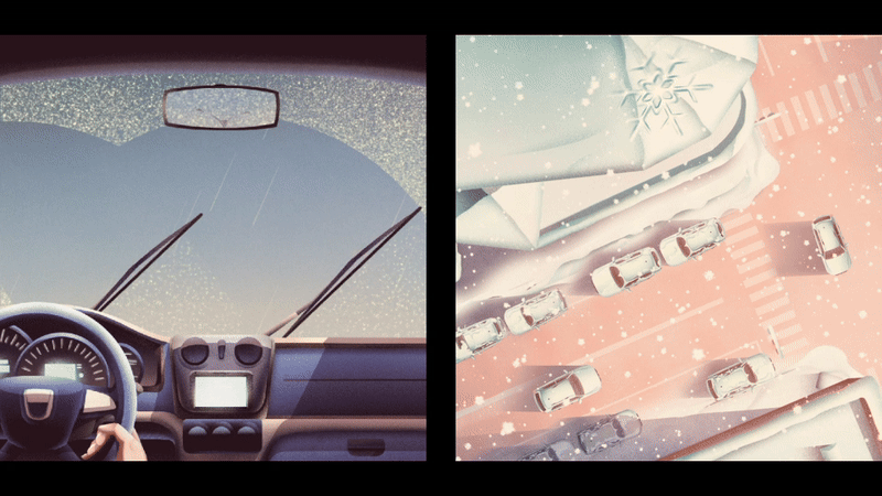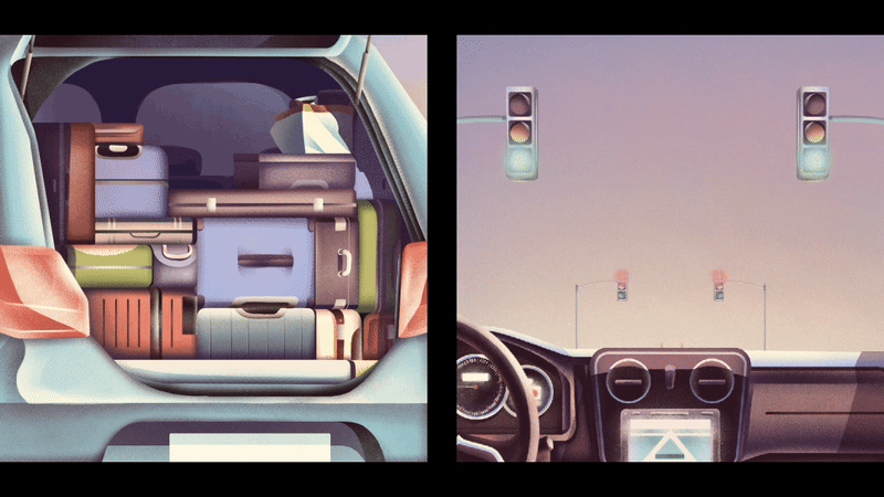 Dacia owners are very proud of their vehicles, they like the feeling of satisfaction of getting a good deal on their car. So proud that it turns every day situations into moments of pure satisfaction… all whilst driving their Dacia. We wanted to portray this satisfaction through a series of mundane automobile situations, elevated to a satisfactory looped illustration